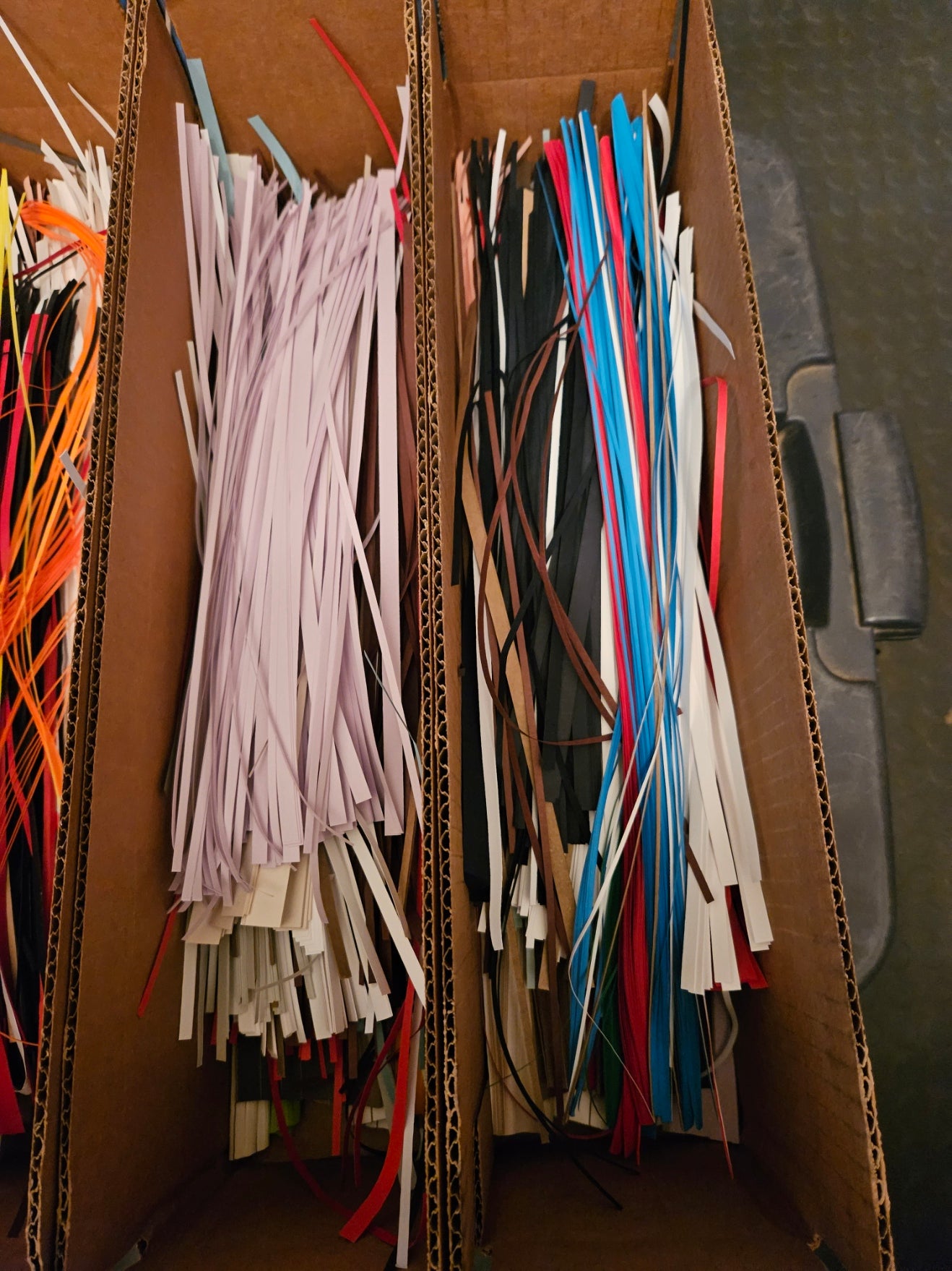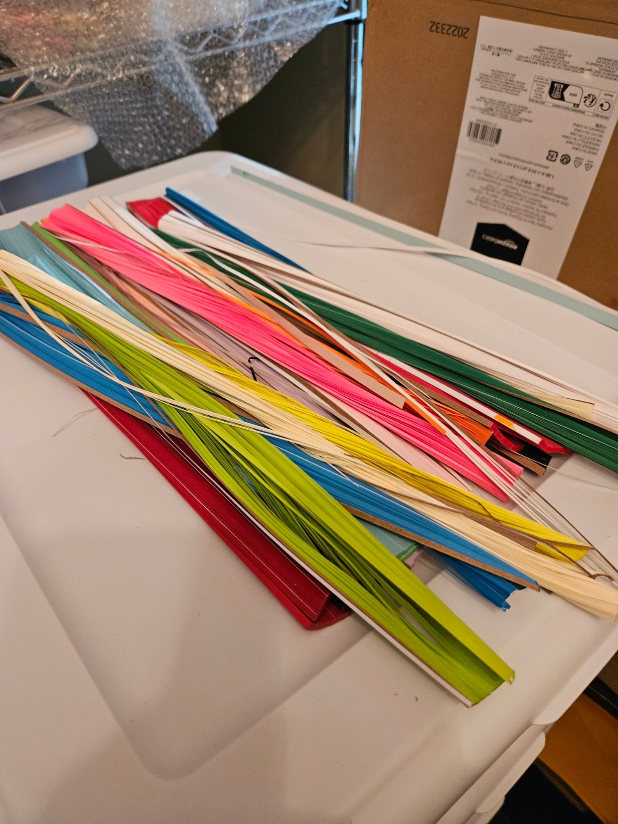 As we are preparing and cutting paper, there is quite a bit of paper that is perfectly good for quilling but that we can't package and sell, so we are packing it up and selling it very cheaply. This is also one of our ways of being more environmentally conscious.