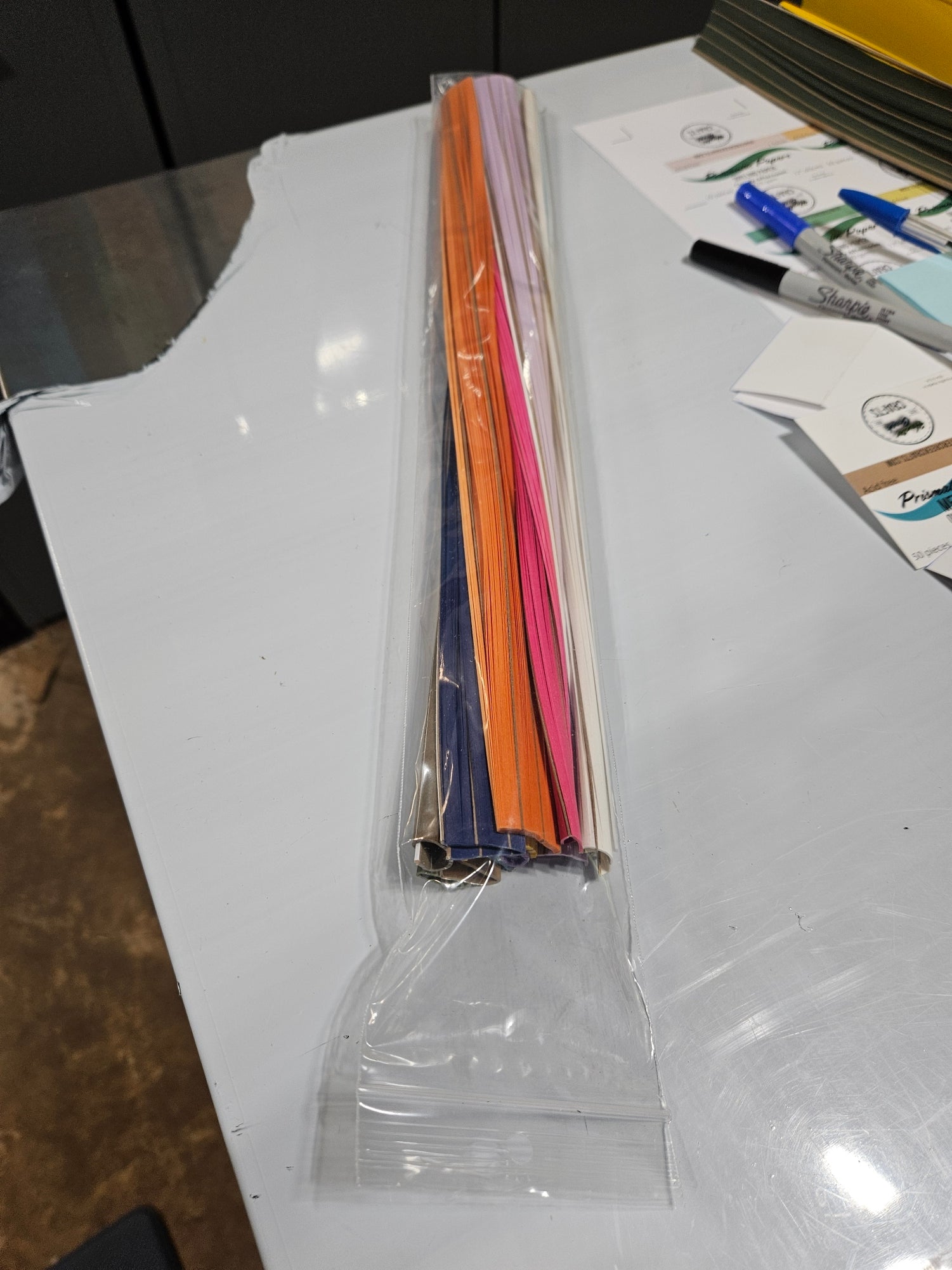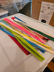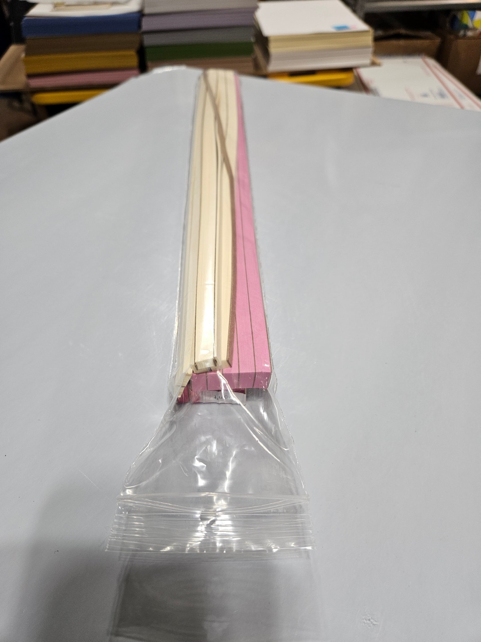 These packages will include paper strips that may or may not be padded at the ends and will vary in width and length. You may even find colors that have not been released yet!